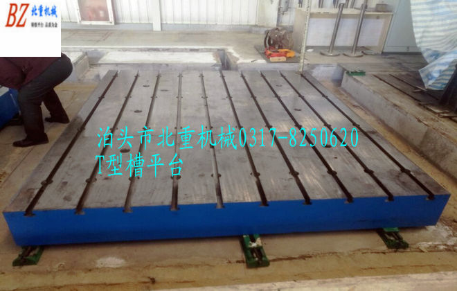 2、異形規格:通常T型槽平臺以長方形為主,如需要正方形如5000*5000mm,可以考慮拼接成2塊長方形,如2500*5000mm。這樣的好處是單塊鑄鐵T型槽平臺精度好控制。