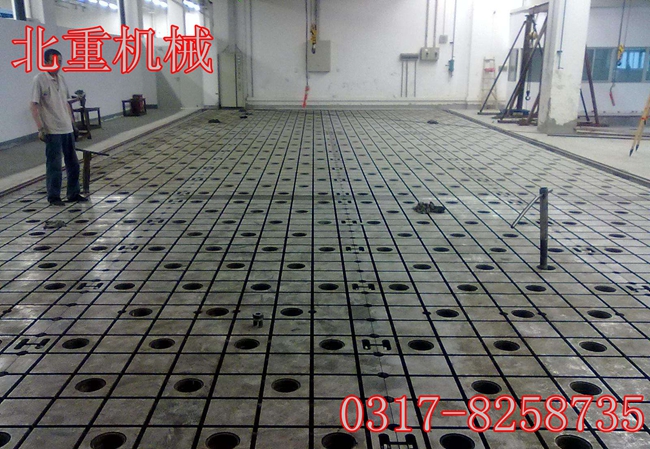 鐵地板T型槽平臺、T型槽工作臺、T型槽平板安裝時按地腳螺栓孔的位置放入相應的機床調整墊鐵,10~15mm可調,地腳螺栓孔配蓋板。
